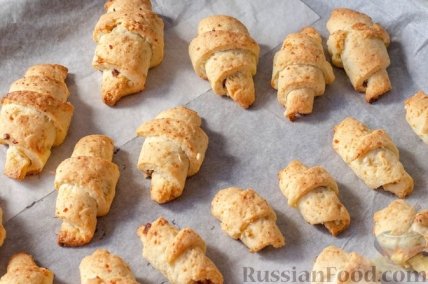 17 Выкладываем рогалики из творожного песочного теста на противень. Отправляем в духовку и выпекаем при 160-170 градусах 20-25 минут.