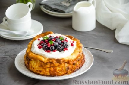 10 При подаче я украсила творожно-рисовую запеканку взбитыми сливками и горстью ягод, но вы можете подать её просто со сметаной, с любимым джемом или вареньем, мёдом или шоколадной глазурью!