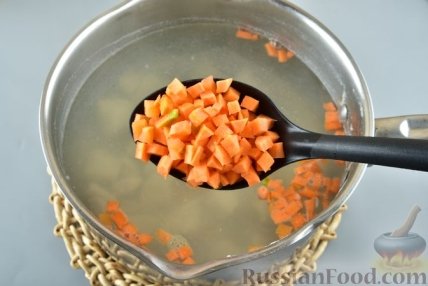 4 Добавить морковь в кастрюлю и варить 5 минут.