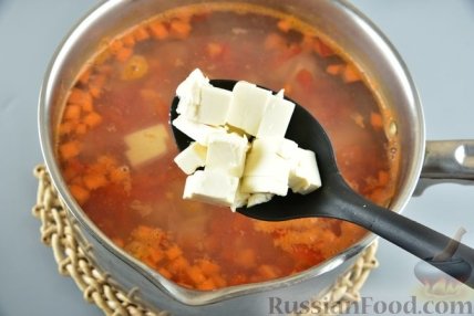 10 Добавить плавленый сыр в кастрюлю и варить 2 минуты.