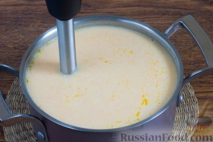 6 Влейте сливки, прогрейте суп еще 1-2 минуту и при помощи погружного блендера взбейте до получения однородной массы. Картофельный крем-суп готов.