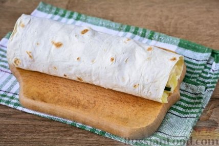 10 Аккуратно сверните лаваш с начинкой в не слишком плотный рулет.