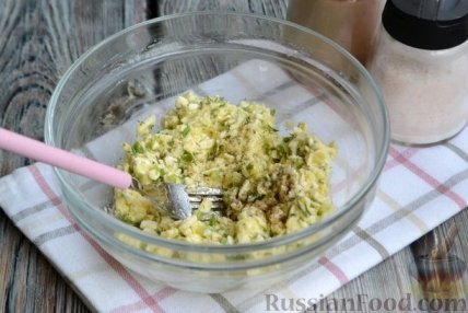 3 В глубокой миске соедините брынзу, зелёный лук и укроп. Вбейте яйцо.