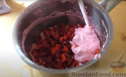 6 Остывшую массу хорошо взбиваем миксером. (На каждом этапе это блюдо можно уже съесть.)
