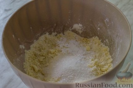 4 Руками перетираем масло с мукой в крошку.