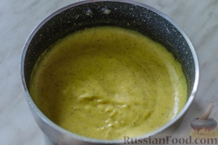 14 Помешивая, варим крем до загустения (примерно 5 минут). Даём крему немного остыть. Включаем духовку для разогрева до 190 градусов.