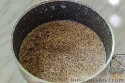 13 Тонкой струйкой вводим яйцо с крахмалом в кипящее молоко.