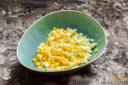 12 Петрушку промыть, обсушить, мелко нарезать и добавить к яйцам.