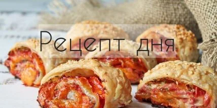 Рецепт дня: Слоеные рулетики с колбасой, сыром, помидором и укропом