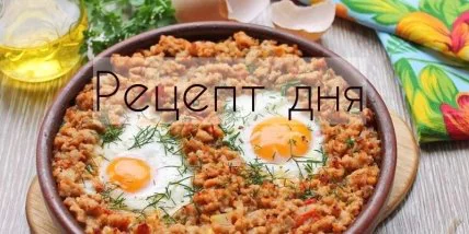 Рецепт дня: Яичница с фаршем и помидорами (в духовке)