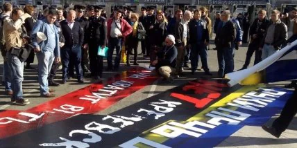 Перед началом акции полиция не согласовала большие банеры, которые планировалось нести перед колоннами. В частности запретили баннеры с надписью: ”Нет кремлевскому фашизму” и ”Оккупация Украины - безумие Путина”. В тоже время разрешили банеры: ”Путин хватит врать и воевать”, ”Нет войне с Украиной”, ”Руки прочь от Украины”.