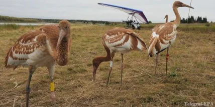 Напомним, 6 стерхов, с которыми президент РФ Владимир Путин совершил полет на мотодельтаплане на Ямале, 20 сентября прилетели в Белозерский федеральный заказник в Тюменской области. От орнитологической станции Кушеват (ЯНАО) до Уватского района Тюменской области стерхи в основном летели за мотодельтапланом, а специалисты, которые сопровождали их полет, на баржах плыли по Оби и Иртыш.