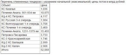 Крупнейшие лоты - 321 км линейной части нитки "Починки-Анапа". Остальное составляют очереди и цеха компрессорных станций.