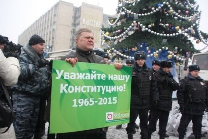 Активисты оппозиционной партии "Яблоко" организовали митинг ко Дню Конституции РФ.