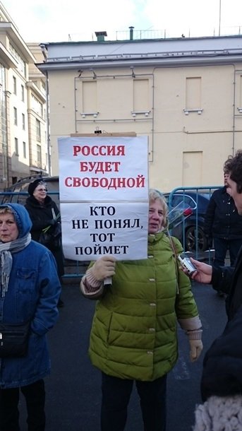 Во главе колонны можно увидеть несколько больших баннеров с надписями: "Россия будет свободной!".