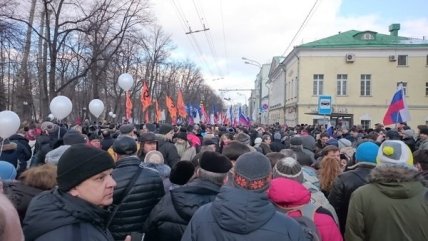 В центре Москвы тысячи людей вышли на Марш памяти российского оппозиционера Бориса Немцова, убитого год назад.