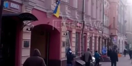 В Москве неизвестные сорвали и сожгли украинский флаг, который был сорван со здания Украинского культурного центра.
