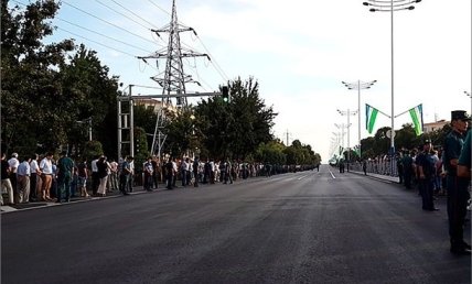 Вдоль центральных улиц, по которым проехал кортеж с телом Каримова, в два ряда выстроились жители города, некоторые из них держали в руках цветы. От проезжей части их отделял полицейский кордон — правоохранители также выстроились в два ряда, на расстоянии около двух метров друг от друга.