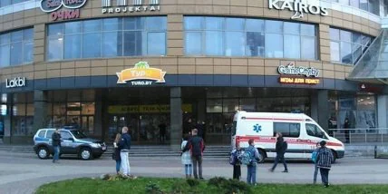 Территория на месте преступления оцеплена, у входа в торговый центр стоит машина скорой помощи и милиция, сообщает с места происшествия корреспондент TUT.BY.