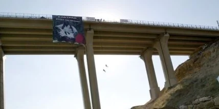 Одновременный прыжок 135-ти роупджамперов стран СНГ, среди которых, как утверждается в социальных сетях, было и несколько украинских экстремалов, зафиксирован в качестве мирового рекорда во время 5-го фестиваля массового роупджампинга, который прошел в прошлые выходные в российском городе Твери. Во время «болтанки» спортсмены пытались еще и дружно держаться за руки, в результате чего под железнодорожным мостом перед самым проходом тепловоза сплелась вычурная человеческая «гроздь»...