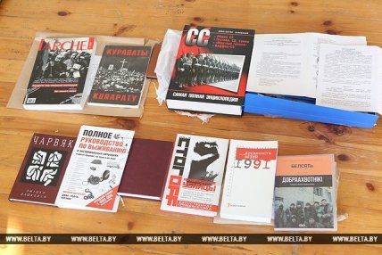 В Комитете Государственной безопасности Беларуси сообщают о задержании профессиональных "боевиков", в которых нашли большой арсенал оружия, боеприпасов, украинские книги и символику украинского батальона "Азов".