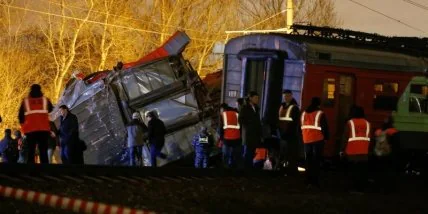 Известно, что вчера  в 22:16 машинист пригородного поезда Москва - Усово применил экстренное торможение, потому что заметил человека на железнодорожных путях. Расстояние оказалось недостаточным для торможения и произошло столкновение. В результате с рельсов сошли четыре вагона и секция локомотива поезда.