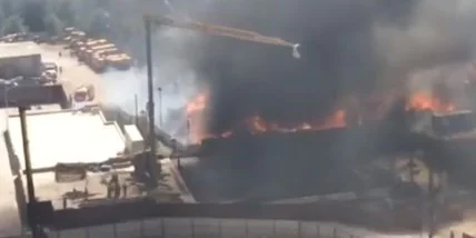 На месте наблюдается густой дым. Работают пожарные и полиция.