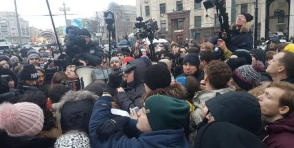 В ответ собравшиеся скандировали: "Мы здесь власть! Путин - вор! Собянина - долой!"