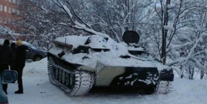 Сегодня утром в Мурманске на улице Северной житель города угнал из автошколы гусеничный легкобронированный тягач и отправился на нём покататься по городу.