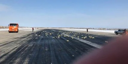 Большая часть груза во время аварии вывалилась из самолета, его собирают на взлетной полосе и окрестностях аэродрома Якутска.