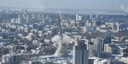 В Екатеринбурге 12 мая во время второй попытки демонтажа недостроенной телебашни обломки разбили лобовые стекла нескольким автомобилям.