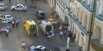 В центре Москвы водитель такси не справился с управлением и въехал в толпу пешеходов на тротуаре, среди семи пострадавших есть гражданин Украины.