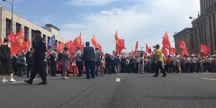 В Москве на митинге против повышения пенсионного возраста на проспекте Сахарова собралось около 50 тыс. человек. Видны флаги КПРФ, Левого Фронта и других организаций. Об этом на своей странице в Twitter написал российский оппозиционер Сергей Удальцов.