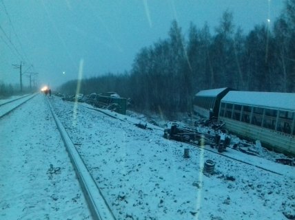 В России недалеко от города Омск с рельс сошел поезд, перевозивший боевую технику .