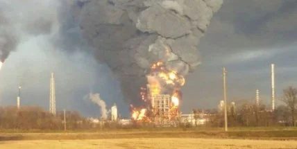 На территории нефтеперерабатывающего завода в российском городе Уфа произошел пожар.