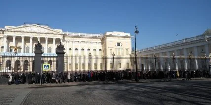 В российском городе Санкт-Петербург на территории "Русского музея" двое неизвестных мужчин хотели с помощью крюка похитить одну из скульптур Михайловского замка.