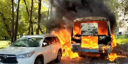 Санкции после 6 сентября: Геращенко напомнила РФ о решении Морского трибуналаЗа 25 минут автобус сгорел почти полностью, а огонь перекинулся на соседние легковые автомобили. На удивление пожарных, тело в катафалке не пострадало.
