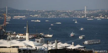 Во время прохода военных кораблей через Босфор на палубах несли вахту военнослужащие, наблюдалось большое количество военных.