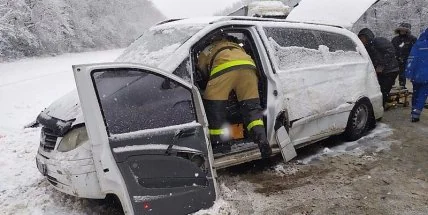 "На 400-м км автодороги "Крым" водитель Mercedes-Benz, который зарегистрирован в Украине и перевозил семь пассажиров - граждан Украины, в условиях снегопада выехал на полосу, предназначенную для встречного движения и совершил столкновение с автомобилем Renault Megane, который двигался во встречном направлении" , - сказал собеседник.