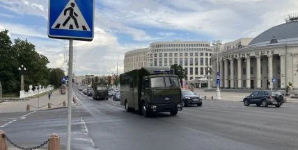В столицу Беларуси Минск стягиваются колонны специальной техники для разгона митингов. В их составе военные грузовики, автобусы с личным составом, автозаки, водометы и другое.