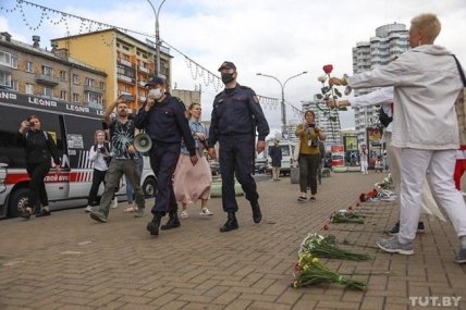 09:30 У метро Пушкинская разрушили стихийный мемориал погибшему демонстранту, но утром люди вновь принесли цветы.
