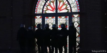 По информации очевидцев, ОМОН заблокировал порядка 100 человек, в том числе журналистов, в костеле и никого не выпускают.