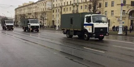 На проспекте Независимости в столице Беларуси была замечена колонна автозаков, военных грузовиков и машин с колючей проволокой.