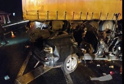 На фото с места ДТП видно, что ВАЗ буквально залетел под фуру и превратился в груду металлолома. Кроме того, под грузовик "влетела" и иномарка Hyndai.