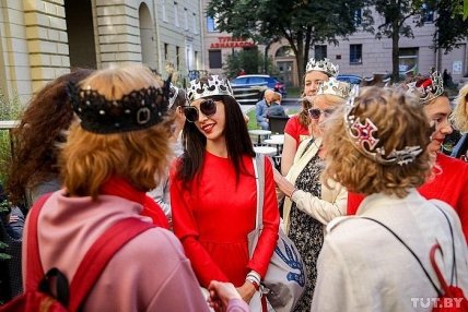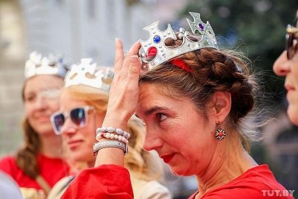 Вдоль проспекта Независимости стартовала прогулка в коронах. Так белорусские женщины отреагировали на новость о инаугурации Александра Лукашенко.