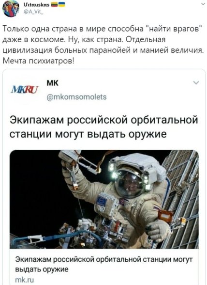 В сети появились первые комментарии по поводу этого заявления. Пользователи пишут, что Россия уже и в космосе видит врагов.