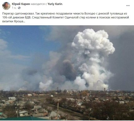 "Так креативно поздравили чекиста Володю с днюхой туловища из 106-ой дивизии ВДВ. Следственный Комитет Одичалой стер колени в поисках несгораемой визитки Яроша...", - шутит военный обозреватель, руководитель группы "Информационное сопротивление" Юрий Карин.