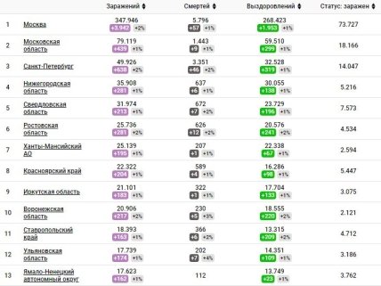В России всего обнаружили 1 354 163 случая болезни, скончалось 23 497 человек.