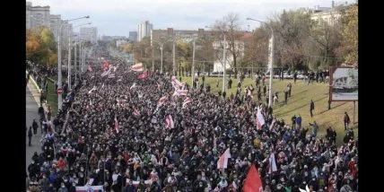 По некоторым данным в столице Белоруси Минске, вчера 25 октября, на акции протеста вышли около ста тысяч человек.