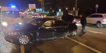 Как сообщают очевидцы, авария произошла по вине водителя "Таврии", его вынесло на выделенную полосу, где он столкнулся с правительственным BMW, после чего его отбросило на соседнюю полосу, где он столкнулся с водителем Nissan
